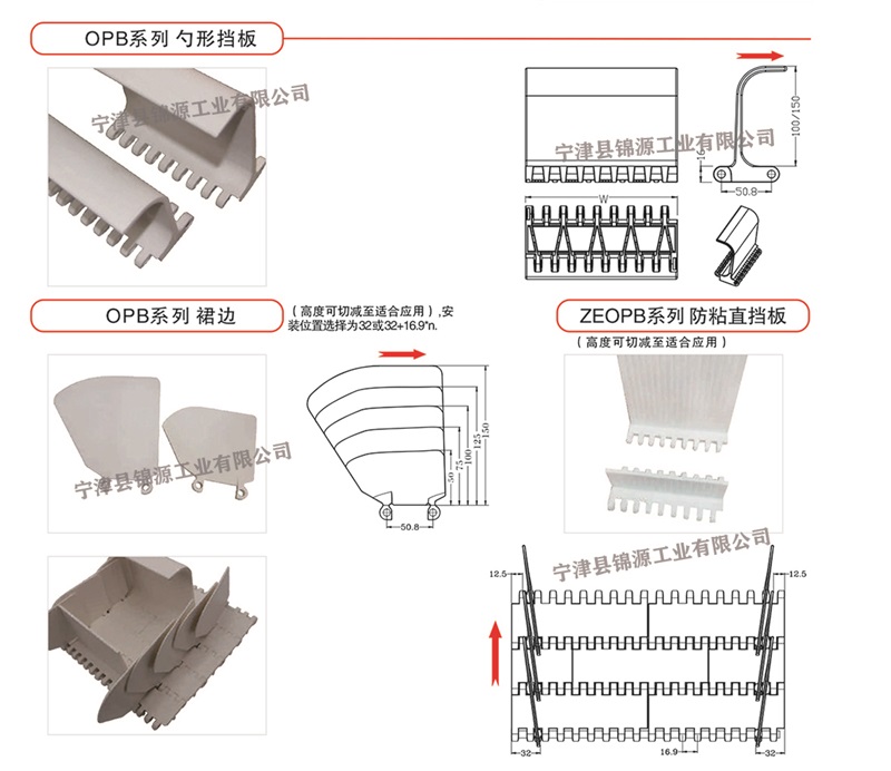 節(jié)距50.8mm 材質(zhì)POM、PP、PP加纖 平板型、平格型、圓孔型、可增設(shè)側(cè)板、擋板